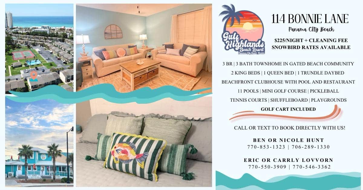 Stay at Cousins Beach House in Panama City Beach—3BR/3BA townhouse with 11 pools, golf cart, beach clubhouse, and easy access to the Gulf. Perfect for families.